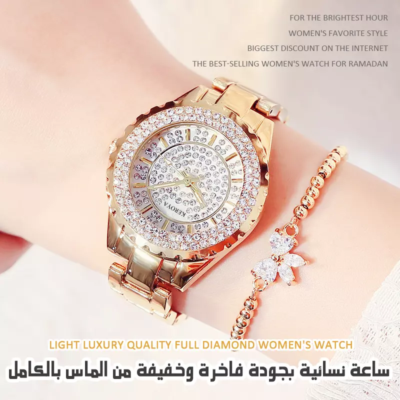 ساعة نسائية بجودة فاخرة وخفيفة من الماس بالكامل